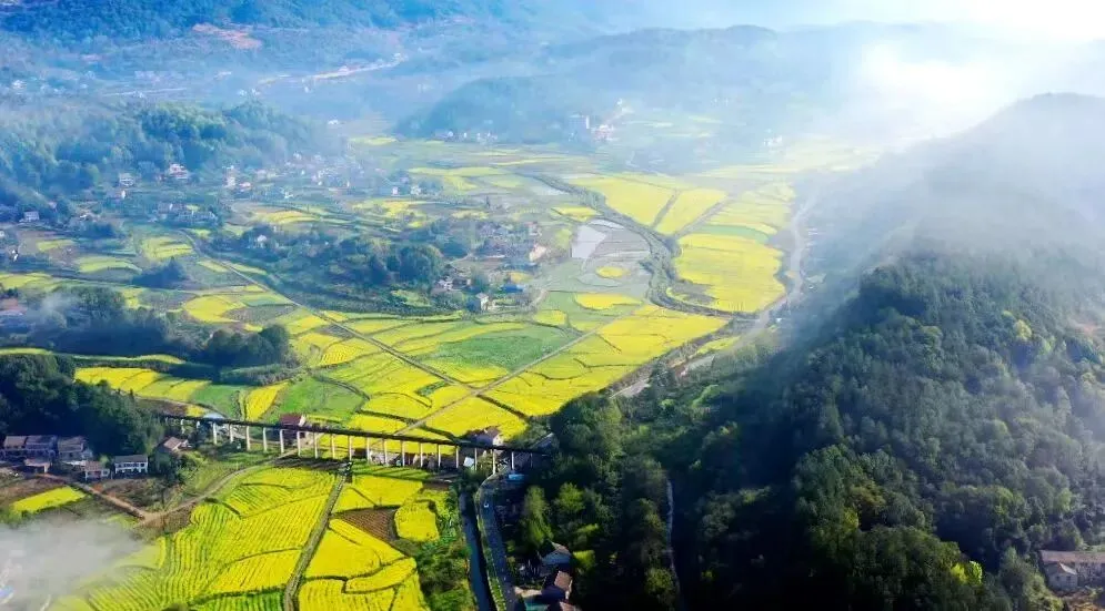 成片油菜花缀满田间,与乡村民居相映成趣,随手一拍都是春日氛围感大片。