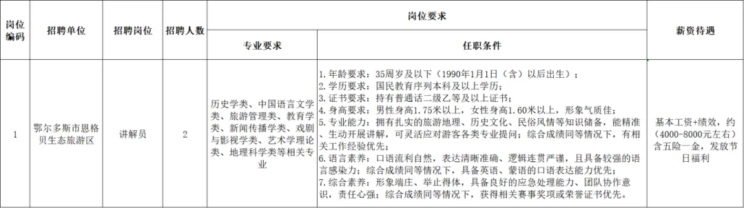 【鄂尔多斯招聘】鄂尔多斯市恩格贝生态旅游区公开招聘工作人员公告