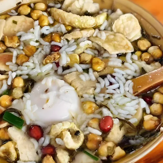 第五美食:土家油茶汤被称为“东方咖啡”。茶叶、猪油、葱花、炒米、花生一起熬,汤色金黄,香气扑鼻。喝一口,既有茶的清香,又有油脂的醇厚,提神醒脑。这是土家人待客的最高礼仪,不喝就是不给面子哦!推荐店:土家女儿城油茶汤铺,15元一碗,可以续杯。