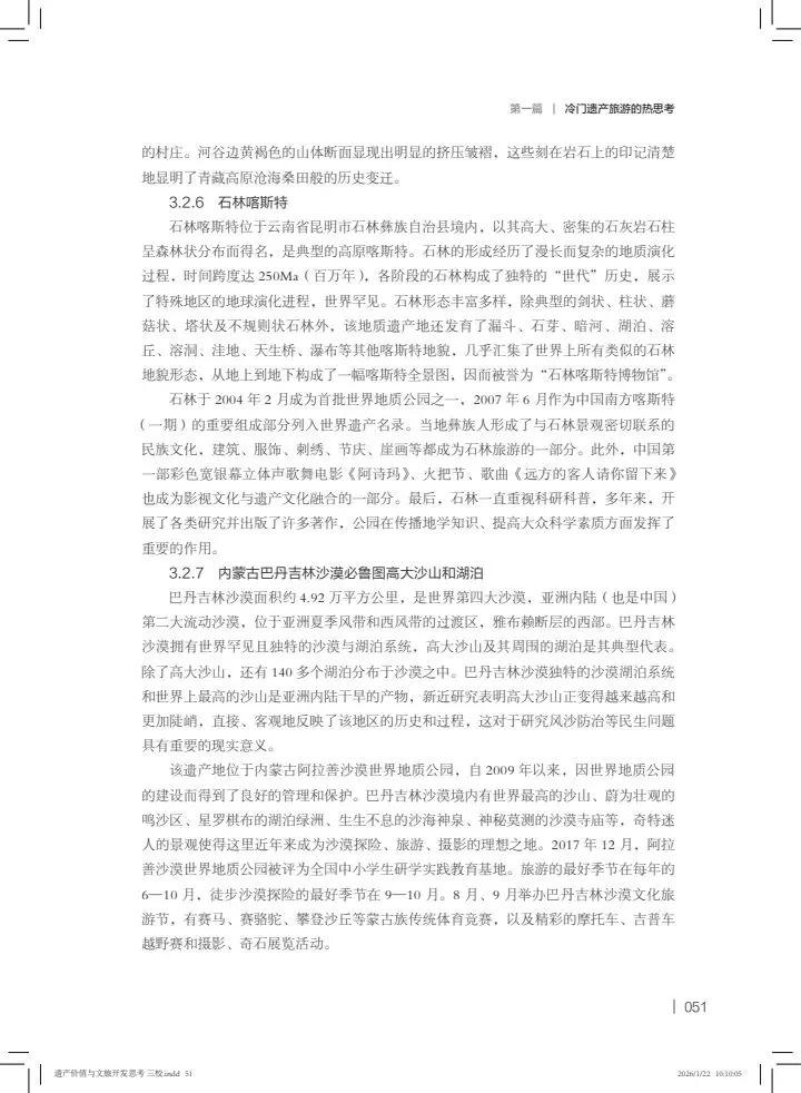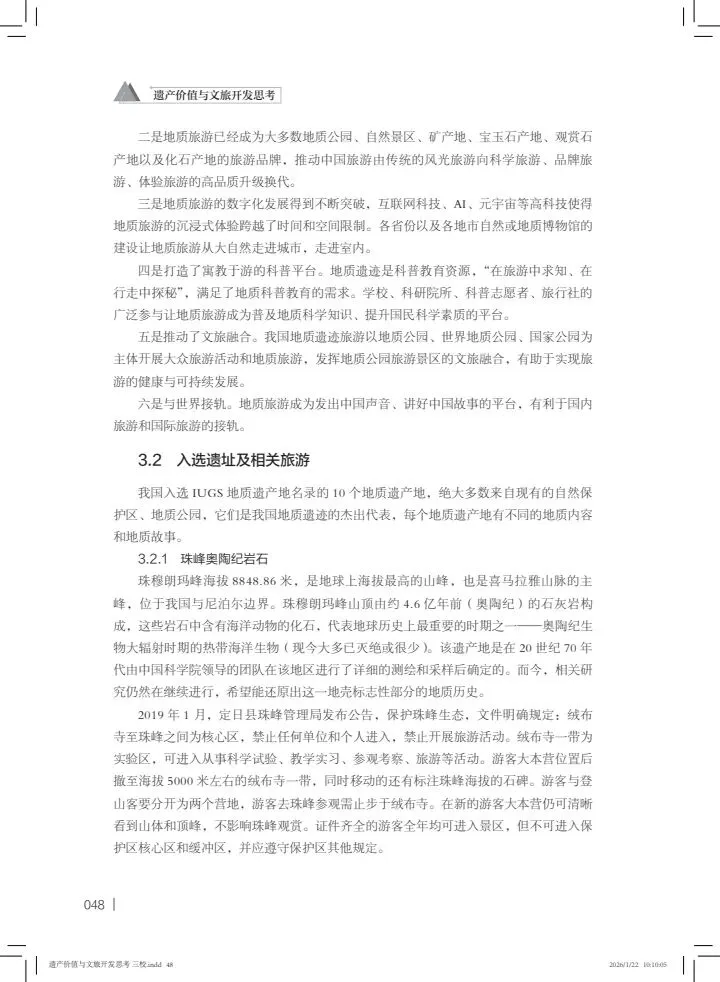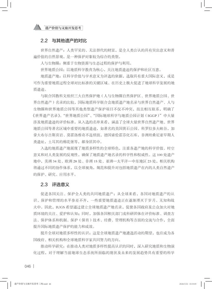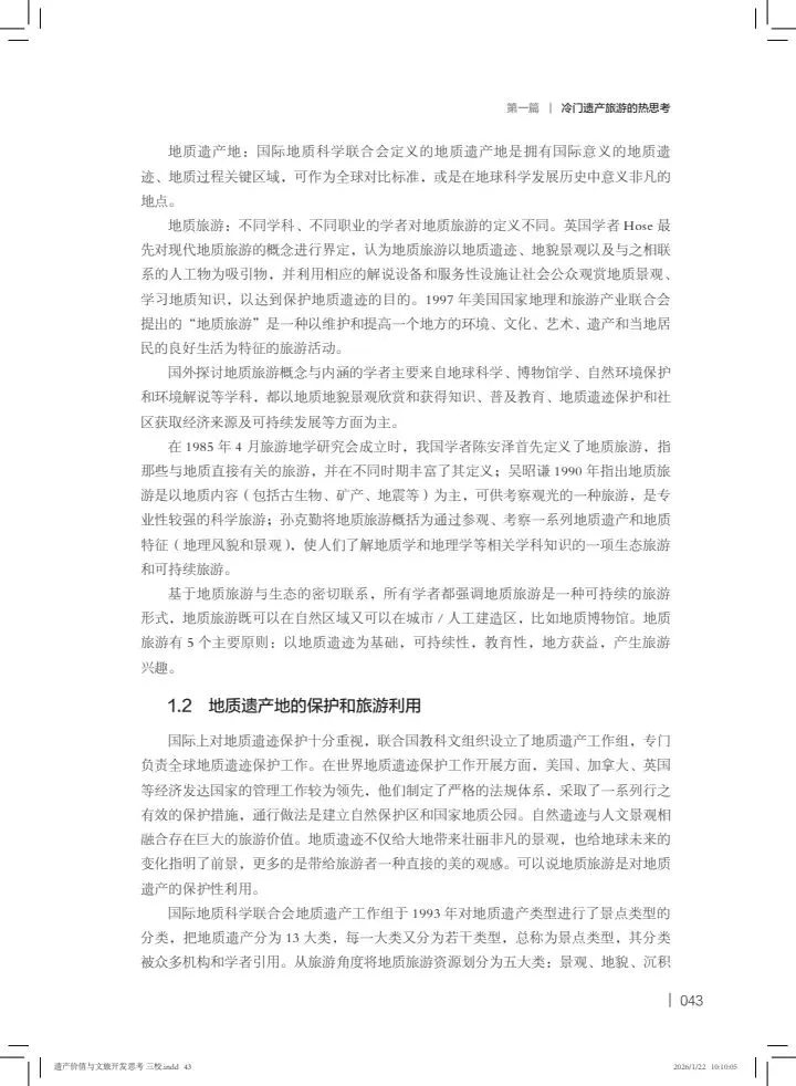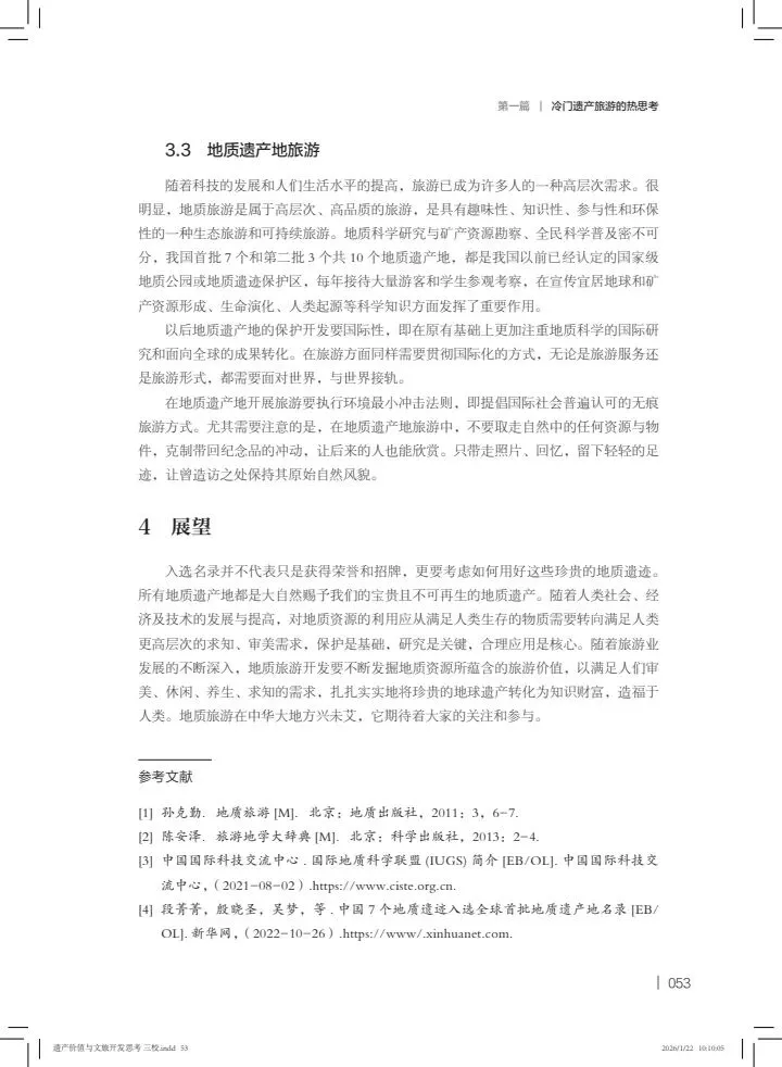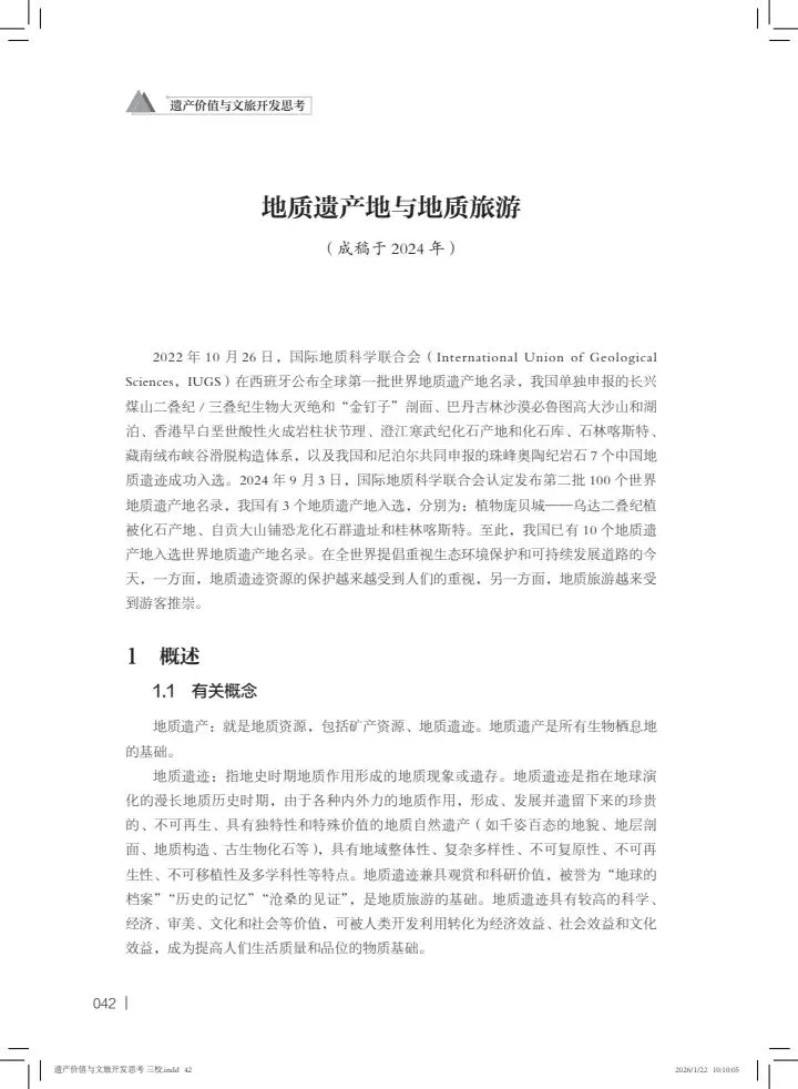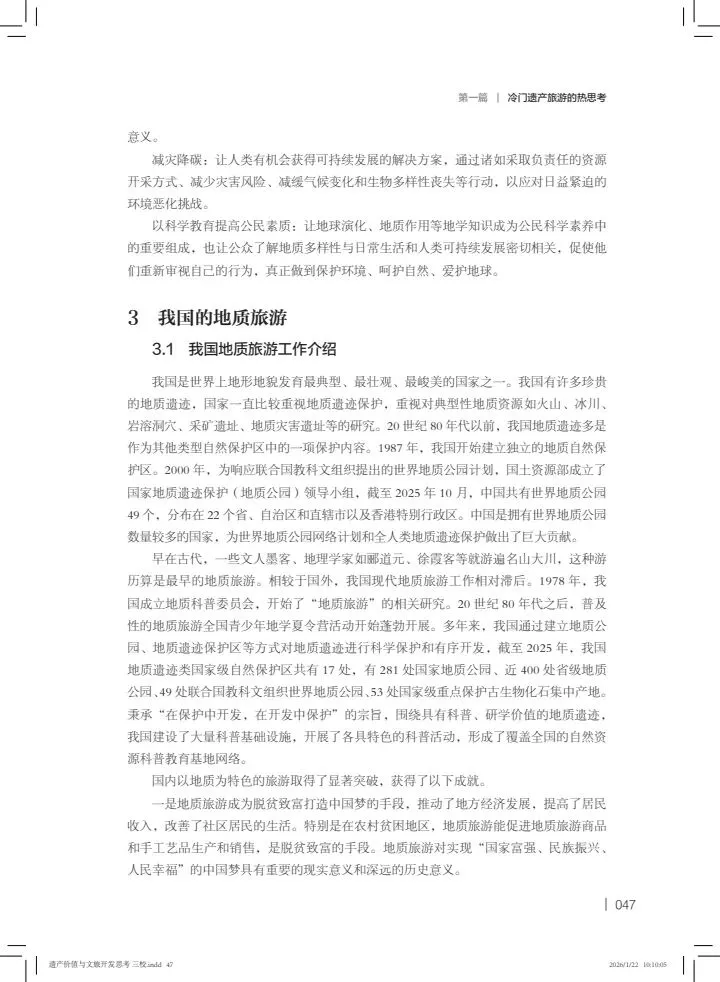 您现在的位置是:首页 > 国内旅游目的推荐 > 正文 国内旅游目的推荐 博雅研究 | 冷门遗产旅游的热思考(3)——地质遗产地与地质旅游 admin2026年03月07日 10:22:34国内旅游目的推荐2 博雅研究 | 冷门遗产旅游的热思考(3)——地质遗产地与地质旅游·上下滑动阅读原文往期回顾 博雅新闻 | 博雅方略报告入选《乡村旅游绿皮书(2024)》 博雅新闻 | 博雅方略报告入选《红色旅游蓝皮书(2024)》 博雅关注 | 新版《旅游规划通则》2026年4 月1日实施,六大核心变化速览! 博雅关注 |顶压前行,文旅向新——2025中国经济年报的文旅答卷 转载请说明来源于"旅荐网",部分内容转载自网络,如有侵权请联系qlwl@foxmail.com删除 本文地址:https://www.15386.cn/post/136101.html 上一篇 想去旅游咨询我 下一篇 泰国旅游 20 问|出发前必看!新手不踩坑,一篇全搞定 相关文章 2026文化和旅游部人才中心美术书法考级报考简章 开心快乐旅游联系电话:18267297030一15171 宜兴市旅游协会:谨祝旅游行业女神们国际妇女劳动节快乐安康、幸福美满! 用英语讲中国故事之我的北京旅游计划(学生习作) 泰国旅游 20 问|出发前必看!新手不踩坑,一篇全搞定 想去旅游咨询我 湖北恩施旅游必去十大景点游玩攻略,2026年3月恩施旅游爆火指南!十大必去,五大神级美食,推荐收藏游玩 【智诺珩旅游|3.8女神节】栖居江浙沪秘境,一站式解锁松弛度假,宠坏每一位女神 ��存一下,去旅游时朋友圈就这样发~ 外语与旅游学院召开2026年春季学期期初工作会议 发表评论 取消回复 评论列表 这篇文章还没有收到评论,赶紧来抢沙发吧~