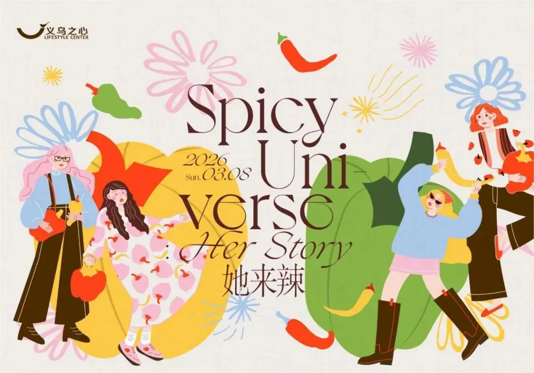即日起-3.8,义乌之心三八节以“她来辣”为主题,通过「辣」为精神符号,打造一场致敬女性多元力量的限定展览。