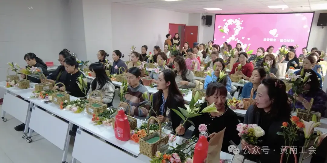 花香沁心脾,雅趣润芳华。活动压轴的插花艺术体验环节,成为现场最温馨的风景线。专业花艺师从花材识别、色彩搭配、造型构思等方面进行细致讲解,手把手指导女职工们创作。在花香四溢的氛围中,女职工们卸下工作疲惫,尽情发挥想象力与创造力,修枝剪叶、错落布局、精心点缀,将一朵朵鲜花化作独具匠心的花艺作品。手捧亲手制作的花束,大家的脸上洋溢着幸福的笑容。在感受美、欣赏美、创造美的过程中,大家不仅陶冶了情操、舒缓了压力,更增进了彼此间的沟通与情谊,生动展现了黄南女职工热爱生活、积极乐观的时代风采。