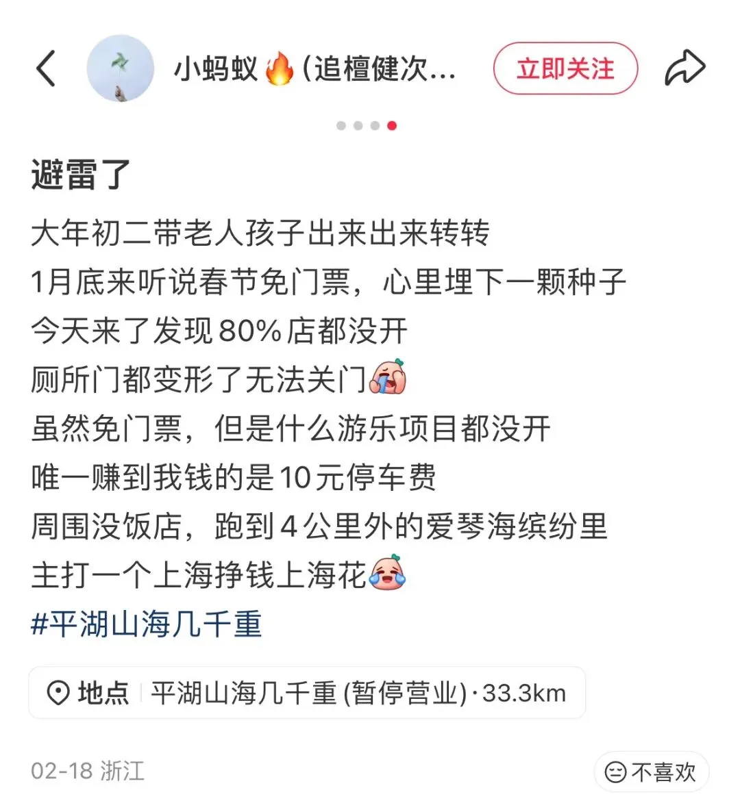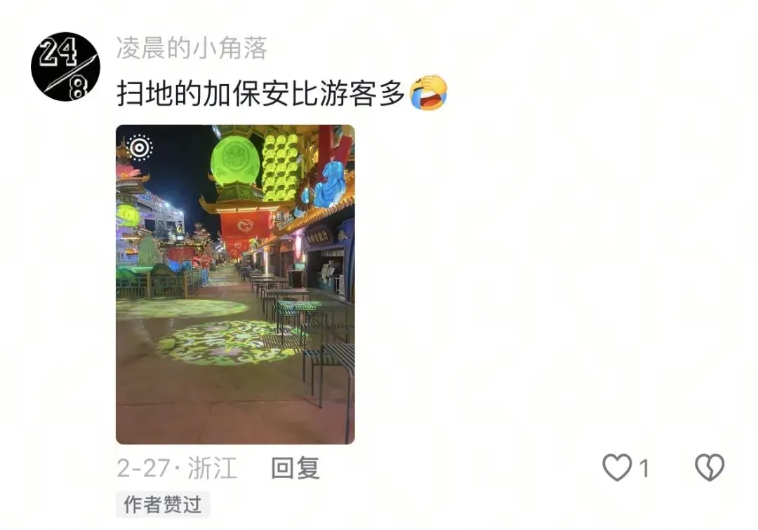 一落千丈?嘉兴这个曾经爆火的景区如今连过年都没有人,保洁、保安比游客还要多!店铺大部分关门、厕所门变形?@第九区网友爆料: 春节的时候还有人吐槽,