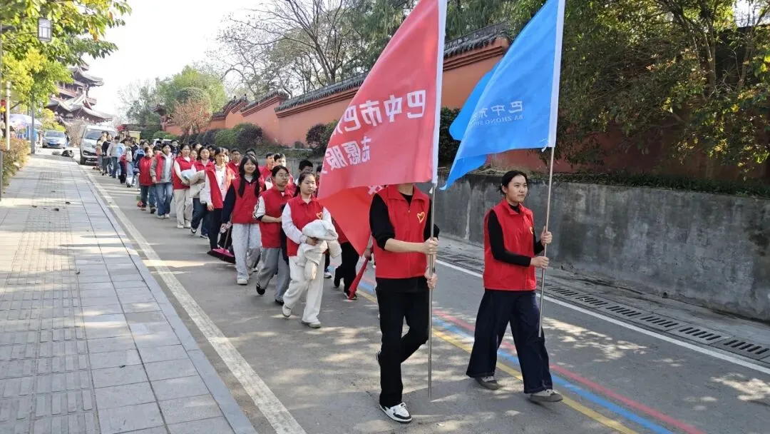 活动过程中,整齐的志愿队伍高举校旗与志愿服务队旗,展现出巴州六中学子昂扬向上的精神风貌。在川陕苏区红军将士英名纪念碑前,全体志愿者合影留念,让红色精神与志愿初心深深镌刻在心中。