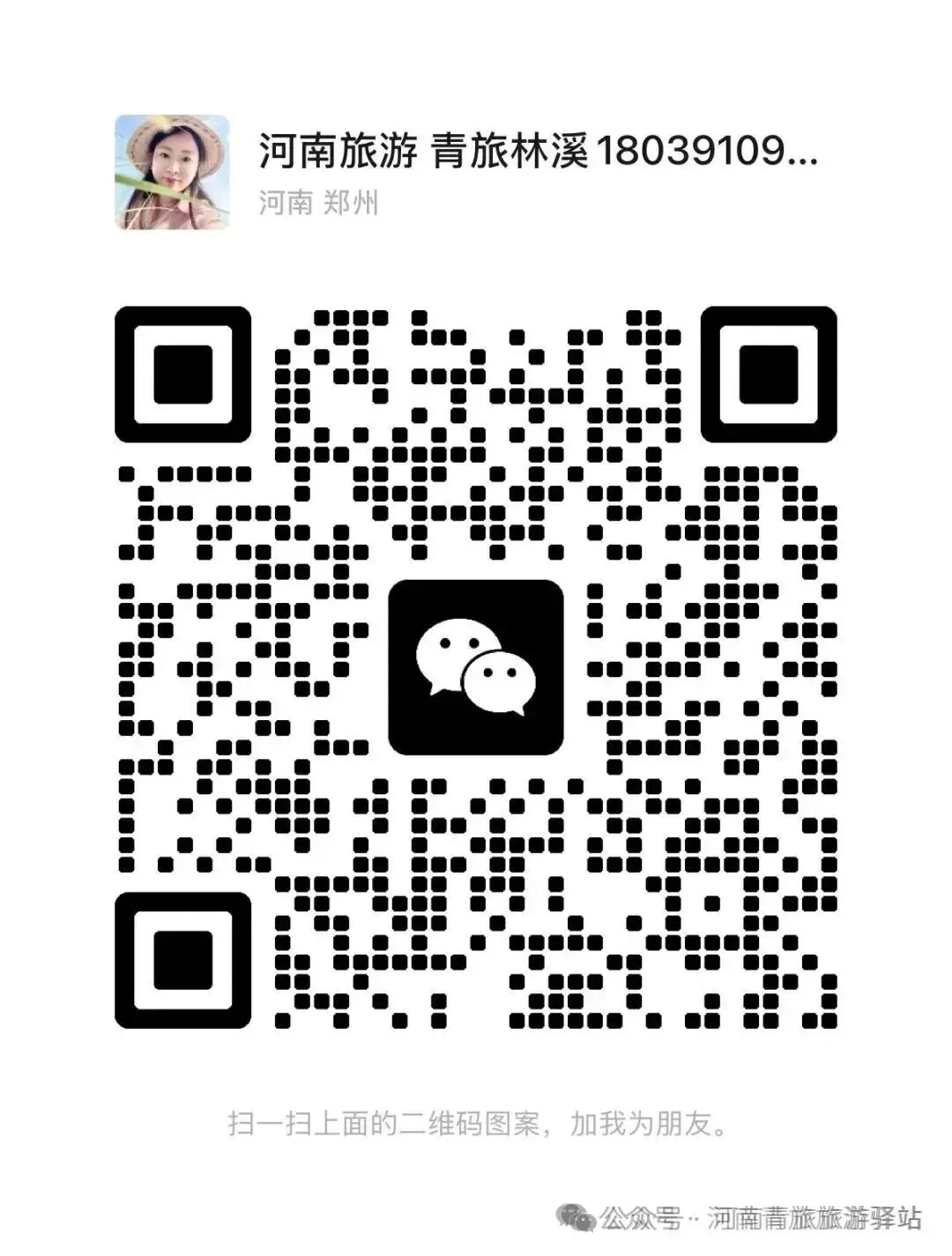 我是河南青旅林溪,电话:18039109902,专注河南旅游18年,擅长:团队旅游,散客出行,拓展培训,自由行,红培,签证,国内外机票,订车,酒店订房,大家有旅游方面的问题可以加一下我的微信,随时问我这边,我一定会用自己最专业的知识为您解答。旅游是一场心灵的修行,我要做的就是为大家提供最详实准确的讲解,以及给您推荐更合适的旅游线路,人本旅游,悉心服务,真诚用心,让客户放心是我的承诺。