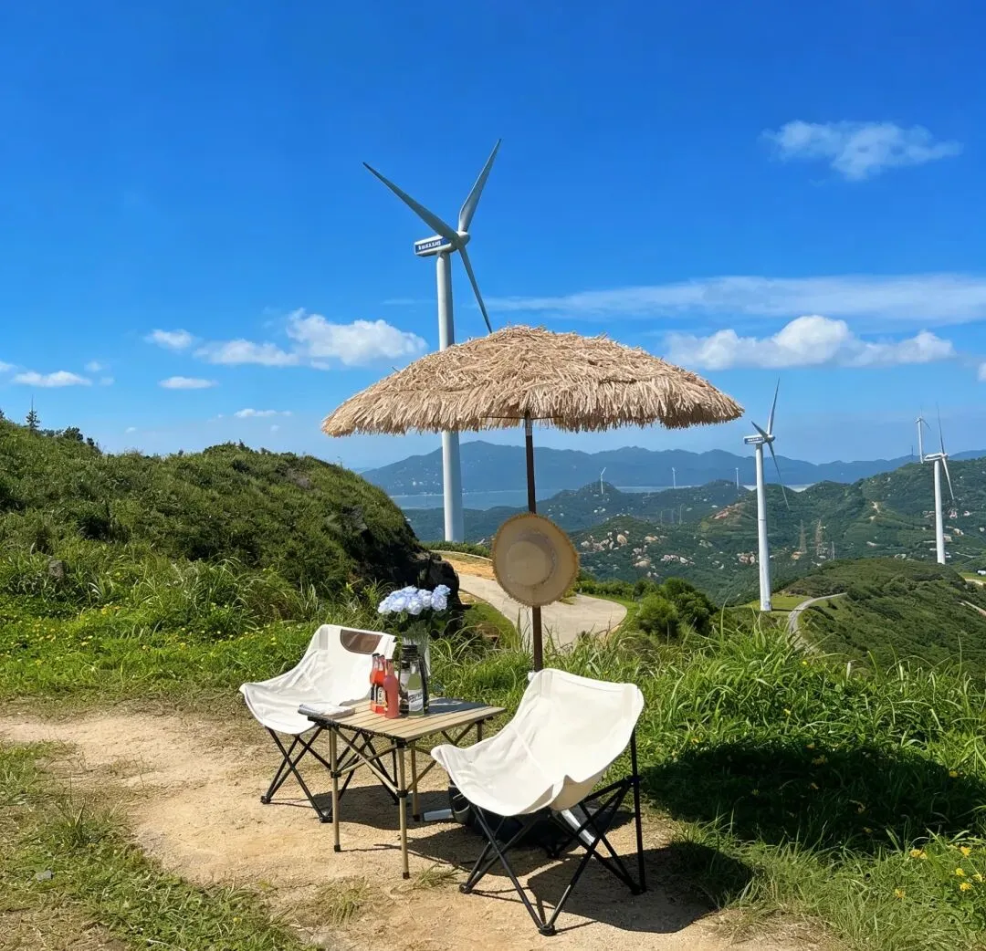 风车山登高俯瞰碧海蓝天,白色风车与海岸线同框,氛围感拉满,超适合打卡。