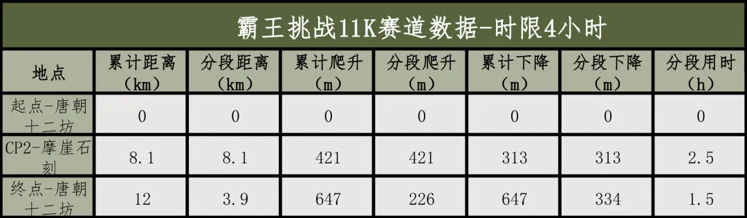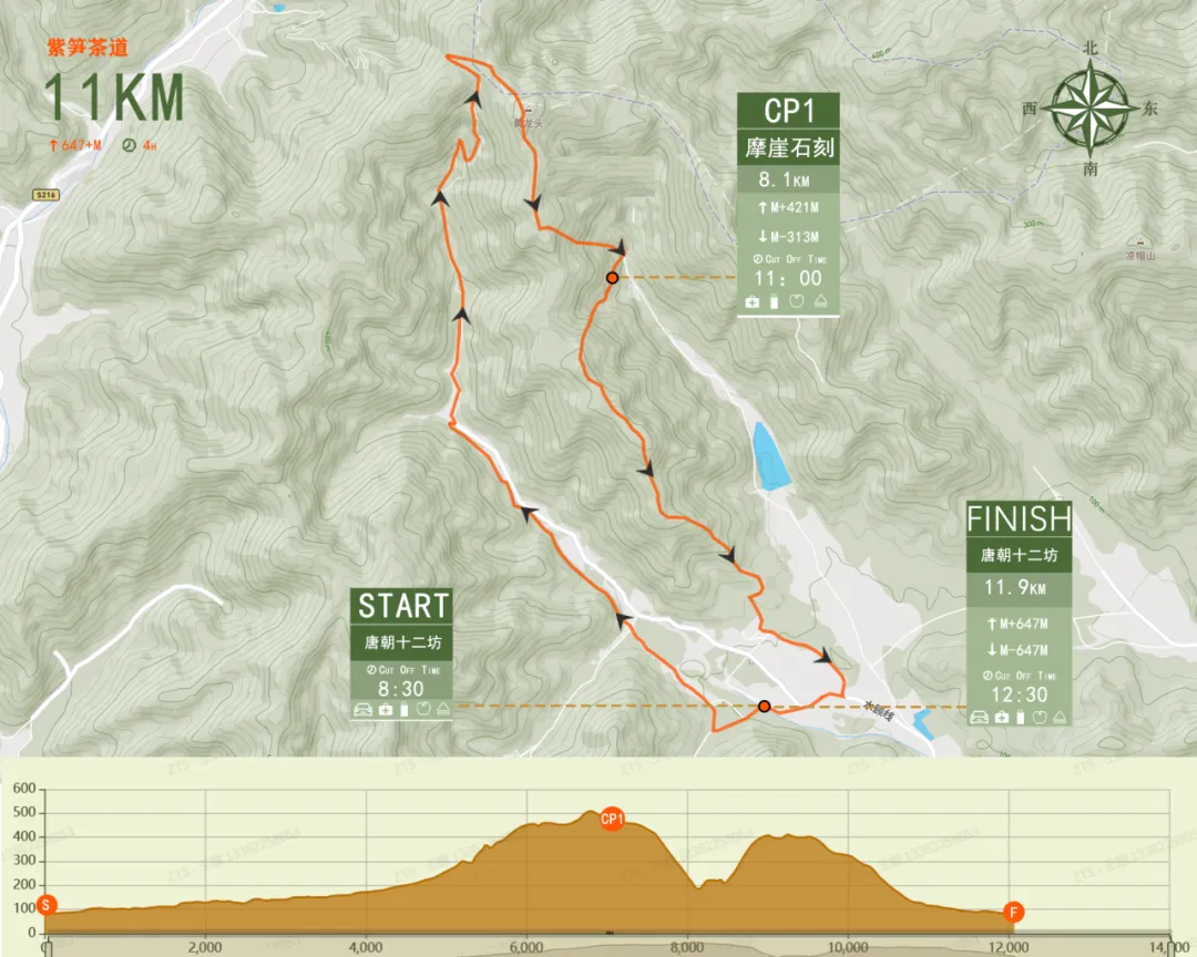 距离11.9KM±,累计爬升647M±,限时4小时;路况含古道30%、自然路面40%、铺装路面30%,难度适中,适合有基础的跑步爱好者突破自我!