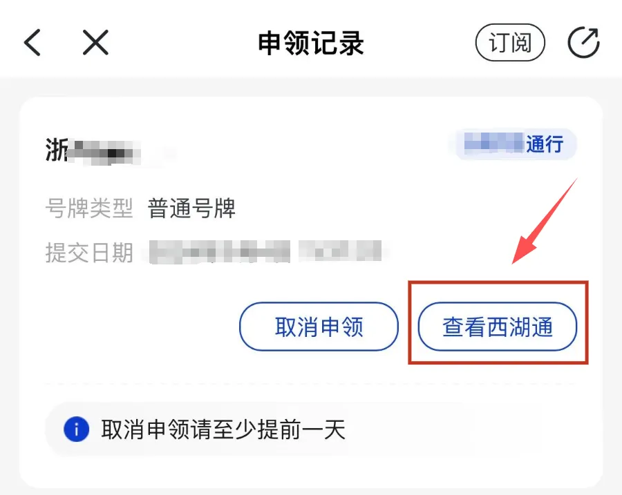 小客车进入上述区域,需提前1天(特别注意,不可当日申领),通过“警察叔叔、浙里办、支付宝”渠道申领“西湖通”,凭申领证明进入上述区域,每个自然月内每车仅限申领使用1次。