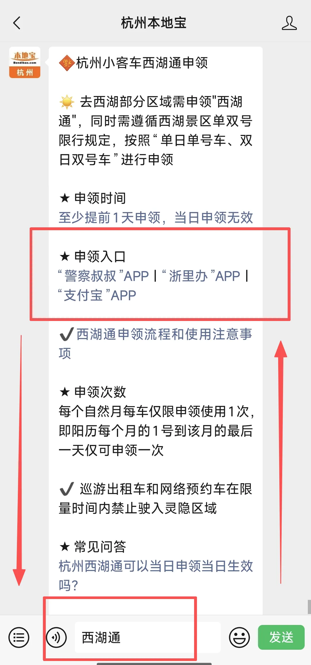 在微信对话框回复【西湖通】