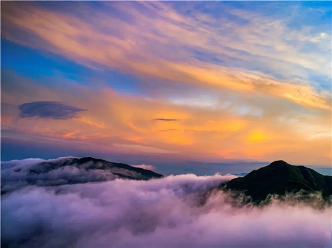 八卦脑景区位于石城县高田镇,海拔1314米,有着“爱情山”的美誉。这里四季景色各异,春季杜鹃漫山,夏季凉爽宜人,秋季云海翻涌,冬季雾凇晶莹。在四月至五月,便可以欣赏到大自然的美景,高山草甸和杜鹃花海相互映衬,构成了一幅美丽的画卷。而且,景区拥有万亩天然草甸,是徒步、摄影、露营的绝佳之地。对于喜欢户外运动的朋友们来说,这里简直就是天堂。你可以在这里尽情地徒步,感受大自然的魅力,也可以拿起相机,记录下每一个美好的瞬间。