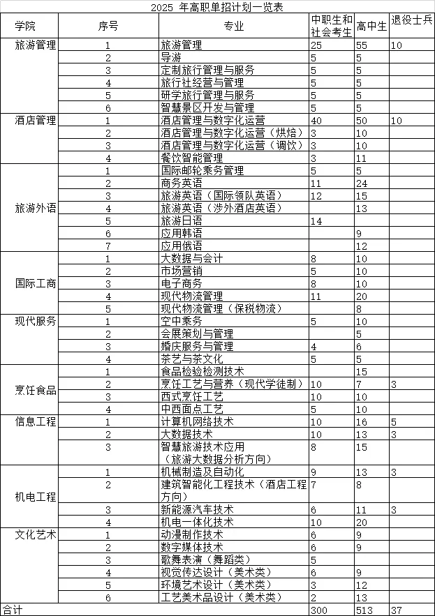 2025年单招招生专业