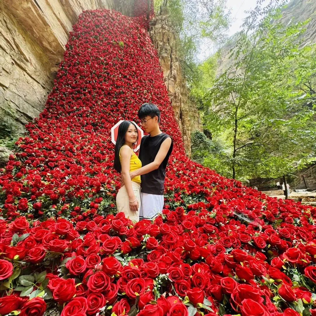 9999朵新鲜红玫瑰垂落如帘,温柔又出片,随手拍都是封神大片,解锁女神节专属仪式感~