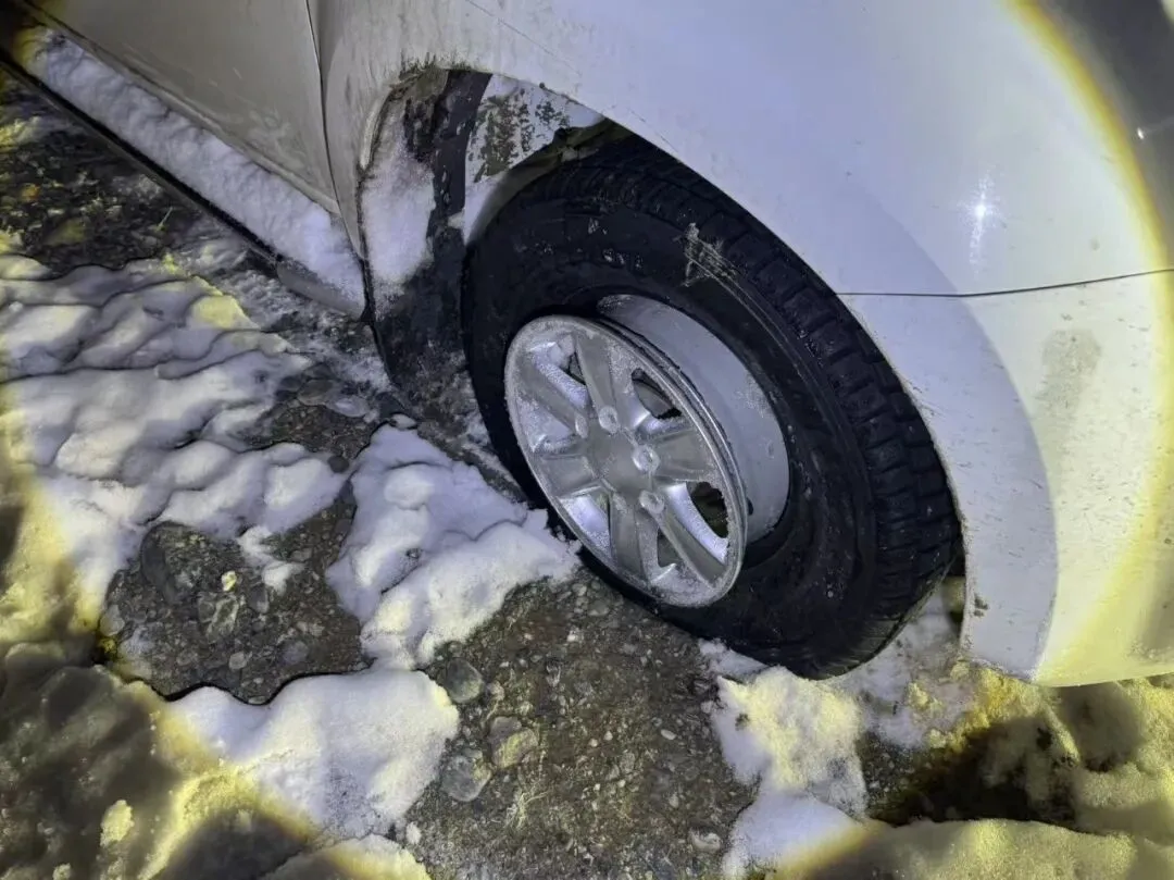 抵达现场后,夜色正浓、寒风凛冽,积雪覆盖路面给救援工作带来了不小的难度。救援队员不顾严寒,迅速对现场情况进行勘察,判断车辆被困原因及脱圈故障细节,快速制定出科学合理的施救方案。随后,两人分工协作、默契配合,熟练操作救援工具,一边用千斤顶顶起车辆,调整轮胎位置、处理脱圈故障,一边清理车轮周边积雪,逐步将深陷积雪的车辆缓缓移出困境。