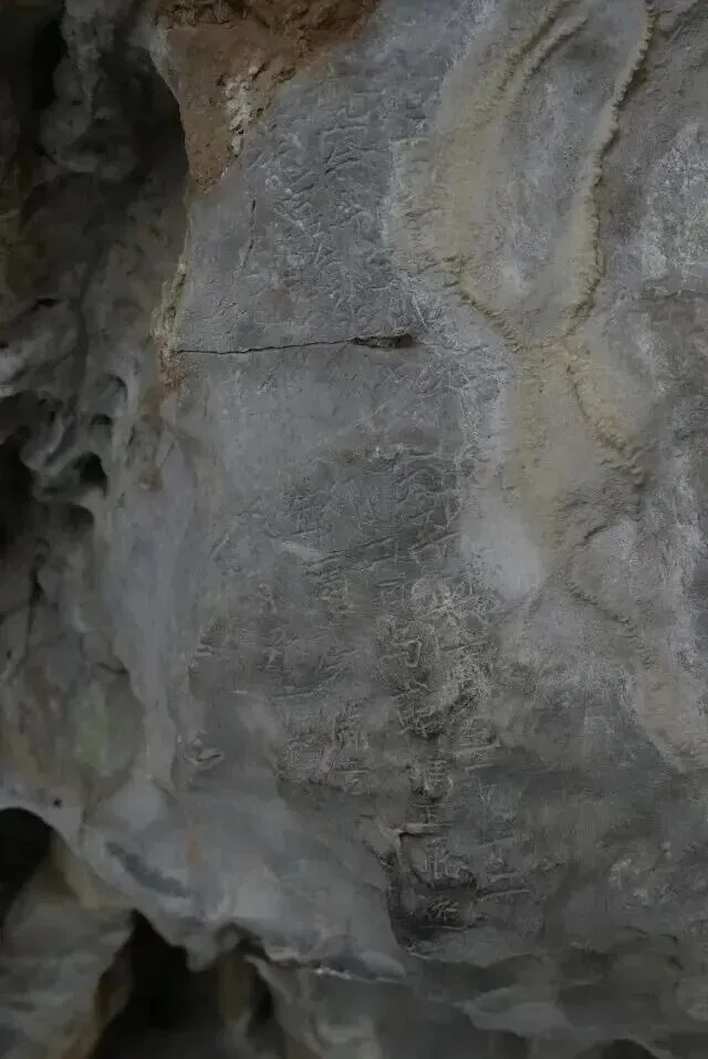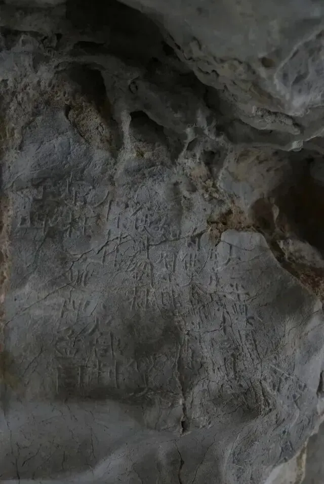龙泓洞的“一线天”是一处奇妙的地质景观,在洞顶的岩壁缝隙中,抬头仰望能看到一缕如银线般的天空。但不管我怎么努力地往洞顶仰望,都没法目睹这一奇观。讲解的导游说那个透光的石缝非常小,角度刁钻,光线也暗,轻易能看到,要看缘分。