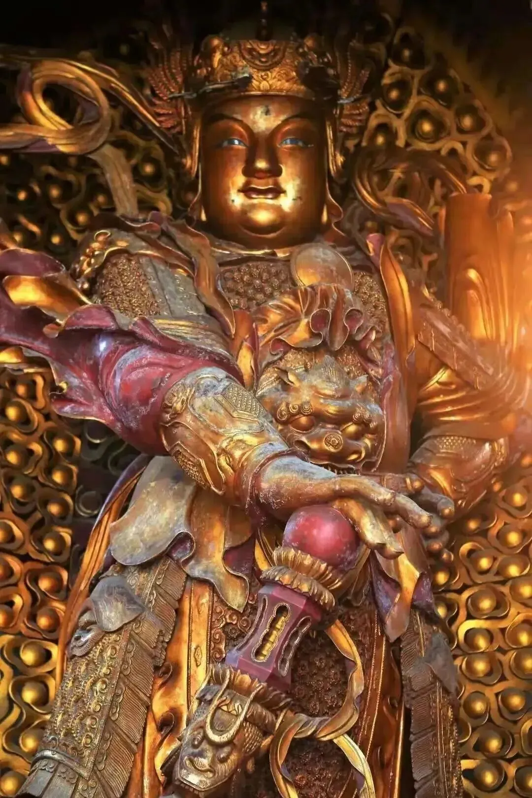 冷泉溪旁的多闻天王造像,亦是元代汉藏艺术融合的典型代表,其身披唐代风格的山文甲,肩覆兽头披,面相丰满,双目炯炯有神,身坐青狮坐骑,姿态雄健,呈现出一副“威而不怒”的独特气质。