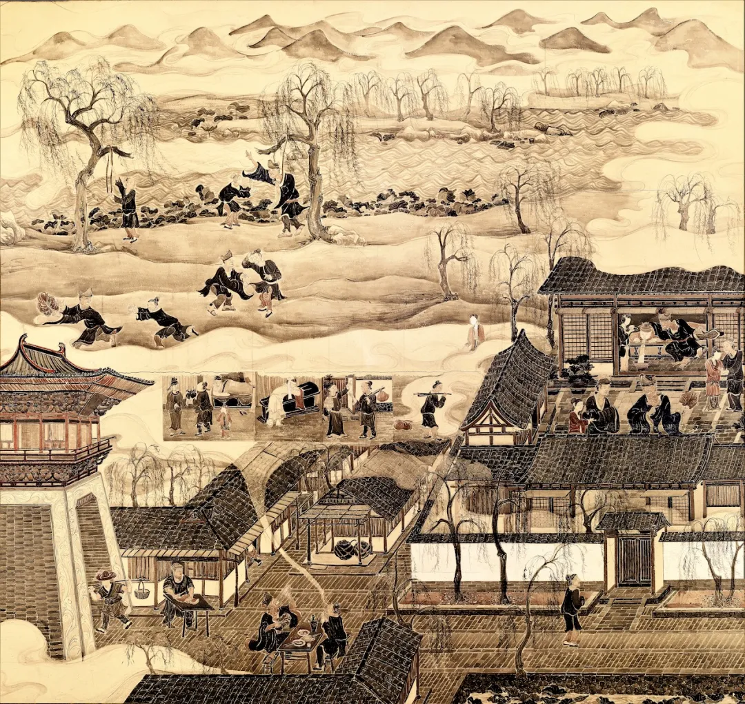 灵隐寺中轴线右侧紧邻药师殿为济公殿,是供奉济公、祈求好运的殿堂,也是灵隐寺最有故事、最有烟火气的地方。中间放置济公(道济禅师)青铜像,殿堂四壁环绕18幅仿宋壁画,总长50米,仿佛一部连环画,讲述了济公完整的一生。