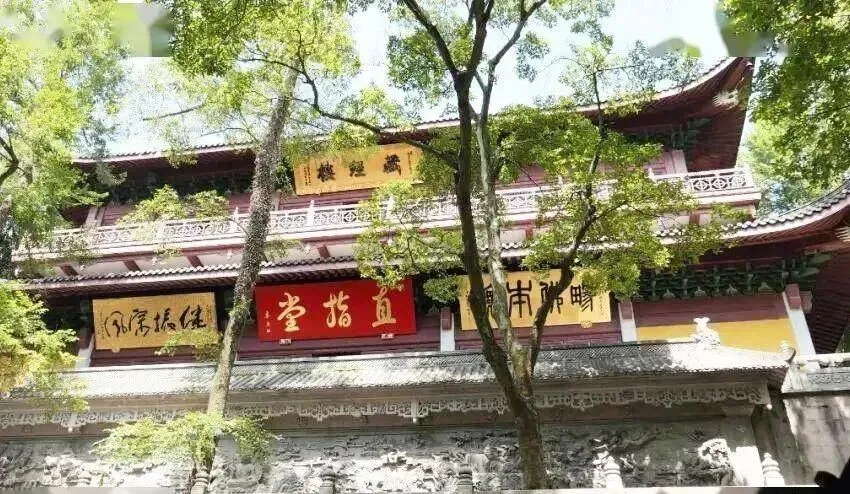 “直指堂”这个名字据传为南宋孝宗所赐,其十分敬重慧远禅师的德行与学问,因此在亲临灵隐寺时,不仅将法堂改名为“直指堂”,还御赐了一枚 “直指堂印”。其底层为文物展厅,展出灵隐寺历代方丈所用过的法器、梵文贝叶经等,中层为法堂,顶层为藏经阁。