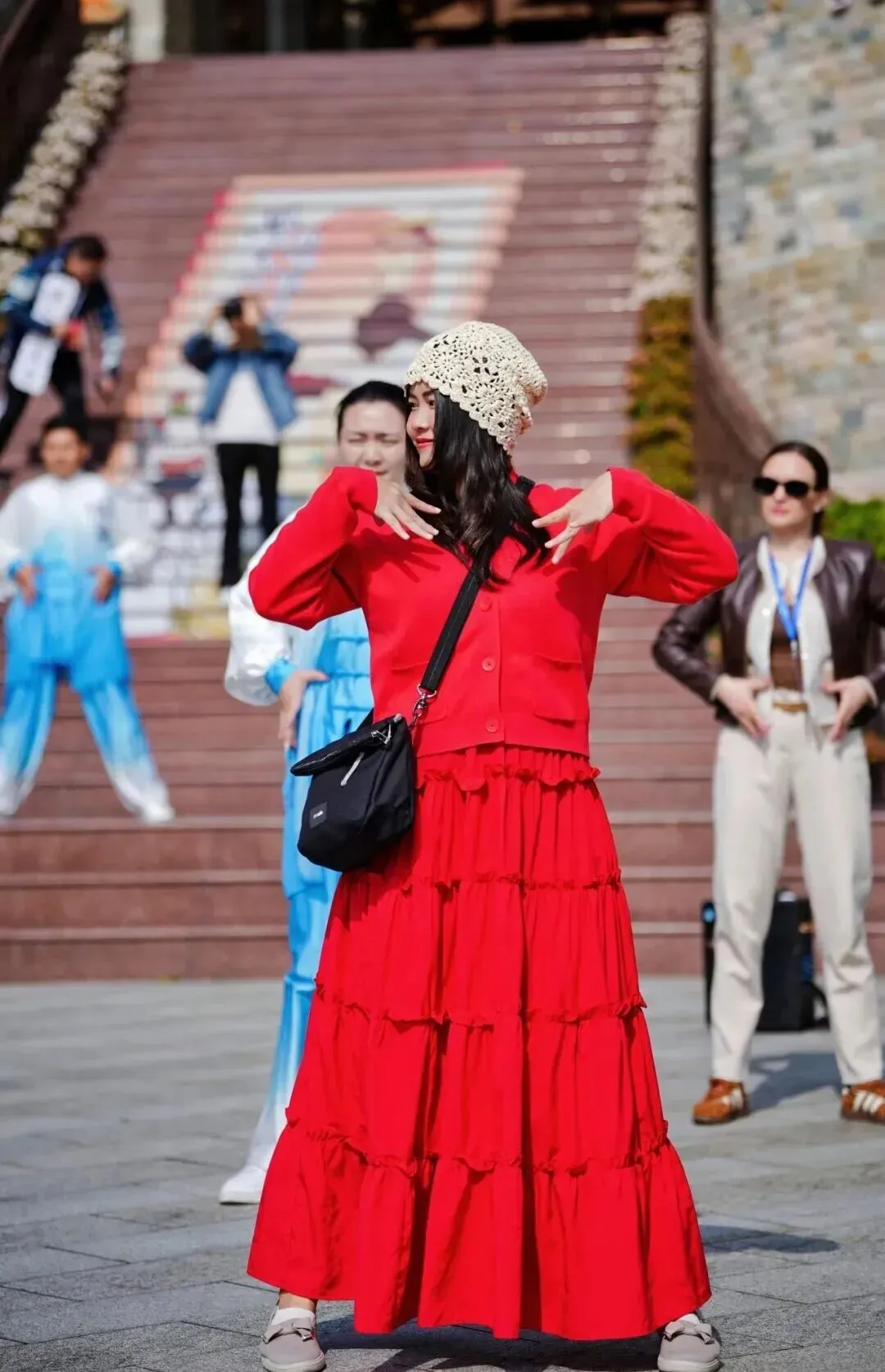 游客们刚下大巴,就被广场上的灵动身姿吸引住了。华佗再造太极健身操,一招一式,皆如行云流水;一笔一画,尽书刚柔并济。