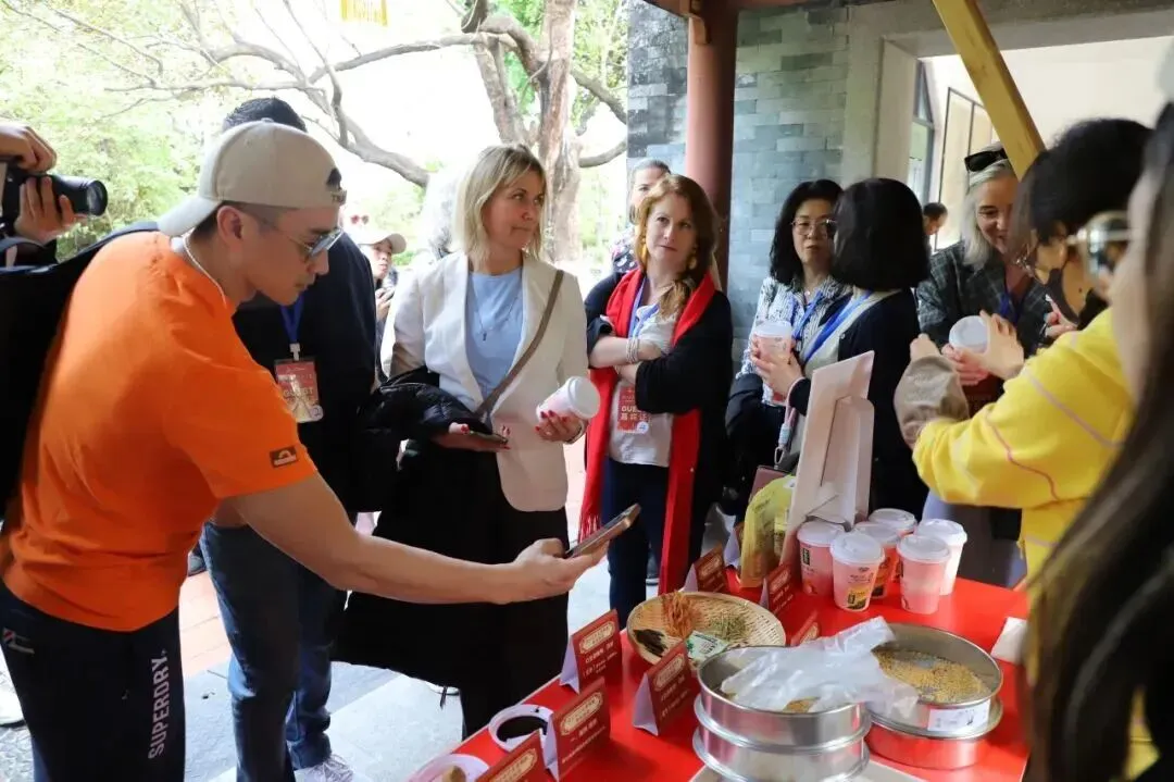 文创售卖摊位也吸引了众多国际友人驻足挑选。除了特色套绘印章,还有灵动别致的神农草堂倒地铃灯夜光冰箱贴;童趣满满的神农草堂百草扭扭乐冰箱贴,将百草元素与萌趣造型相融,鲜活又可爱;经典再创造的“毛茸茸”神农护身葫香囊,成为大家珍藏旅途美好记忆的不二之选。
