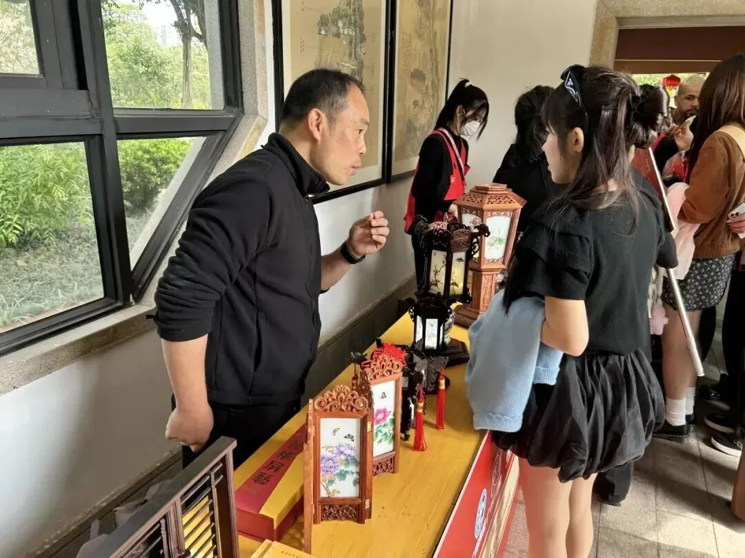 描金绘彩、穿绳结穗的广式红木非遗宫灯,方寸之间,让客人们感受岭南传统灯饰的精巧雅致与吉祥寓意。