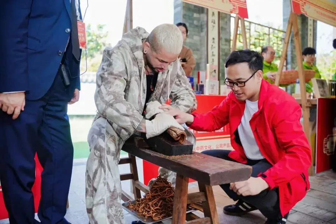 到了园区的特色体验摊位前,更是人头攒动、热闹非凡。各类中医药体验项目让国际友人们跃跃欲试。