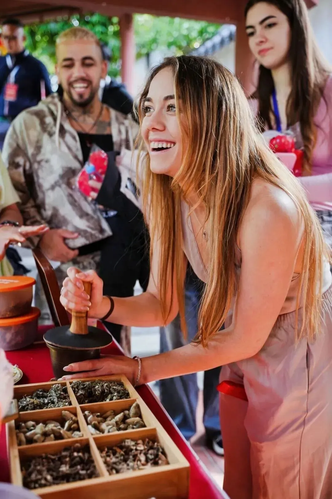 还有更多暖心手作:亲手搓制蜜丸、现贴膏药,再配上对味蕾的犒赏——清甜软糯的马蹄糕,地道广式风味,唇齿留香;蛇胆川贝枇杷膏,润肺止咳,温润舒心;刺柠吉润喉糖,清甜可口……在这个美好的上午,时光仿佛也放慢了脚步,只为让国际友人们细细品味这份来自东方的温暖。