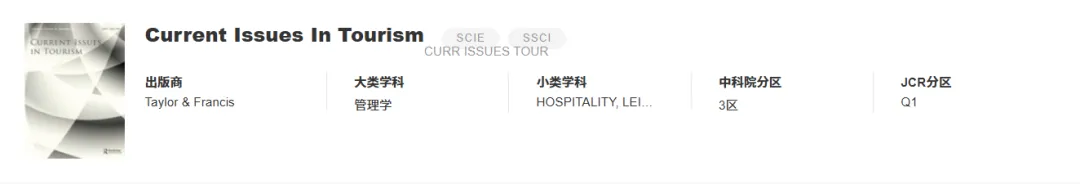 《Current Issues in Tourism》 影响因子 5.7 分区 中科院3区 JCR1区 发文量 282 推荐理由 聚焦旅游体验优化、可持续发展路径、智能技术融合等,录用率 70%+,审稿 2-3 个月,适配行业热点类研究