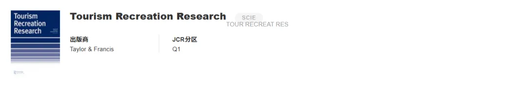 《Tourism Recreation Research》 影响因子 3.4 分区 JCR1区 发文量 84 推荐理由 录用率 65%+,审稿 2-3 个月,适配休闲与旅游交叉研究 END