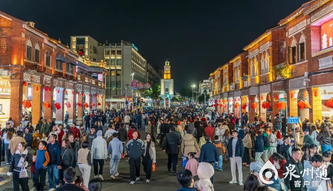 春节期间,泉州古城游人如织,图为入夜时的西街热闹非凡。(泉州晚报社融媒体记者 陈起拓 摄)