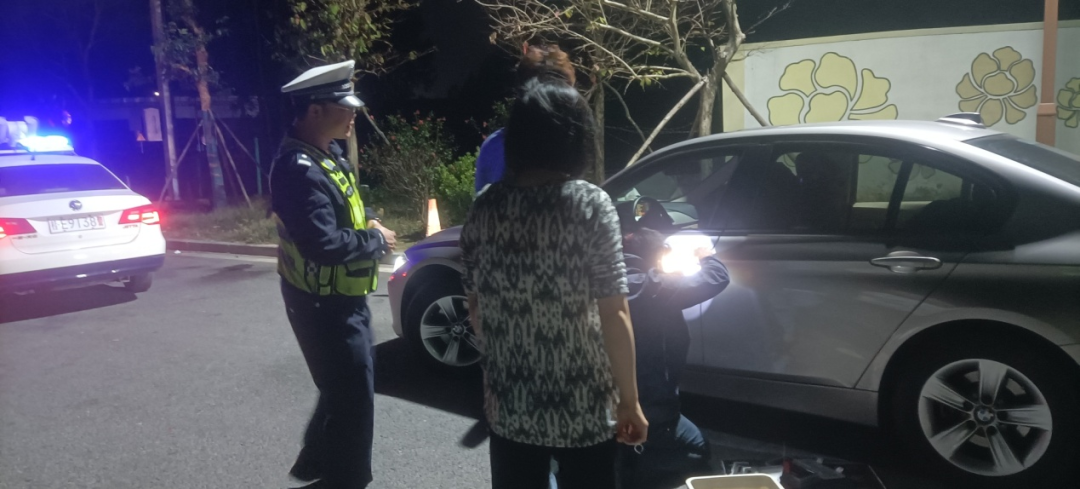 2月17日20时30许,北海市公安局交警支队高速公路管理一大队民警郑长兴带队在兰海高速公路铁山服务区下行线巡逻时,发现路边一辆小车停在加油站旁的路边上,女车主正在焦急地打电话。郑长兴随即上前查看情况。