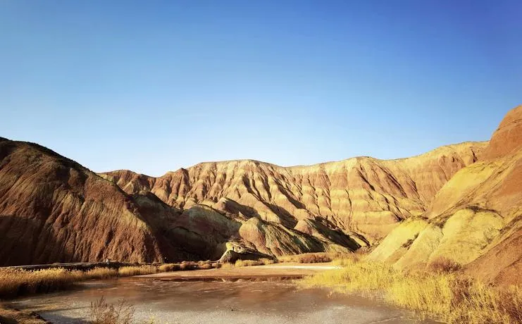 金崖风景区的丹霞地貌在西北并不算罕见,但这里的特别之处在于它保留了最原始的样子,没有修栈道没有建观景台,你就是沿着土路走进去,然后突然看到那些金黄色的崖壁出现在你面前,那种震撼是刻意营造不出来的,是自然本身的力量。