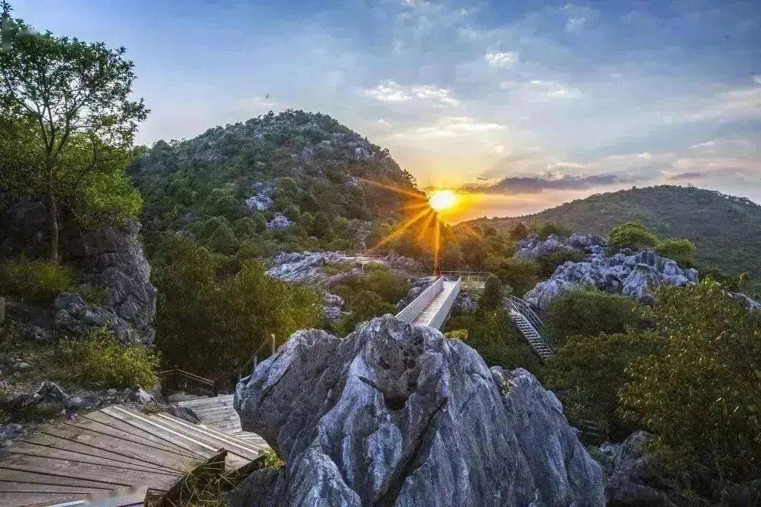 石林与藤蔓相互交错,尽现大自然的巧夺天工和无穷变幻。东面三衢山是衢州母亲山,景观以典雅精致见长,主要景点有赵公岩,三衢圣母;中不的小古山,景观以奇,险,美为主要特色。