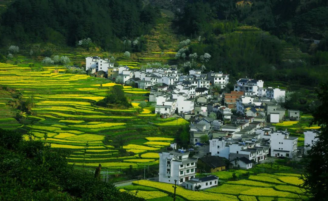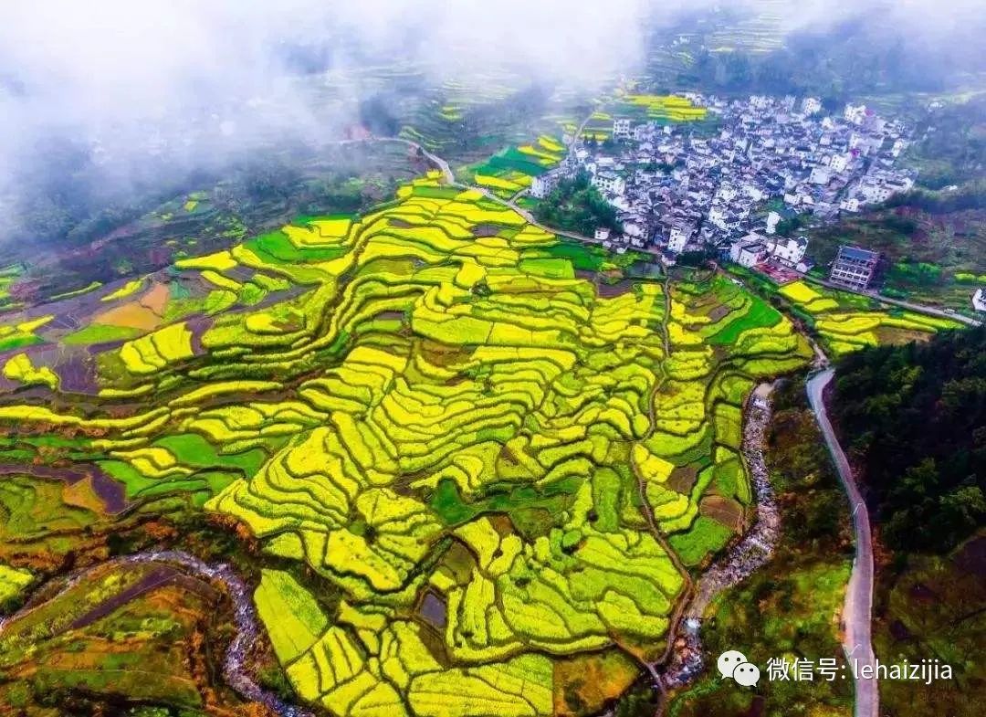 江西最美丽的油菜花在婺源“江岭”和“篁岭”,走进江岭和篁岭,粉红的桃花、洁白的梨花与层层金黄的梯田油菜花、白墙黛瓦的民居相辉映,构成一幅幅唯美的天然画卷。婺源篁岭被誉为“全球十大最美梯田”之一。