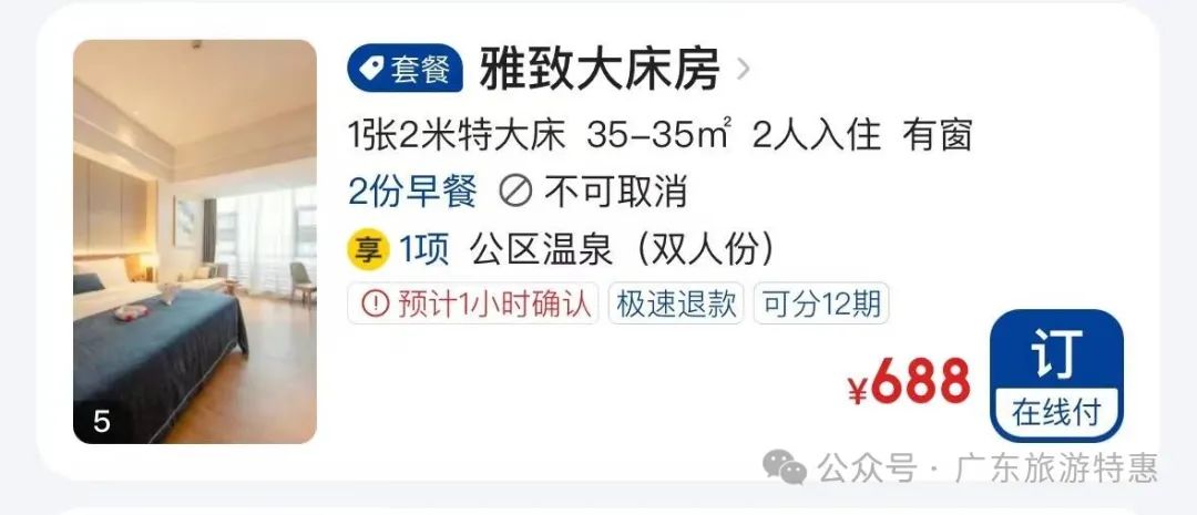 【广州从化·财富度假酒店】流溪河畔老牌真温泉酒店~268元抢豪华大床房+双人早餐+公共温泉