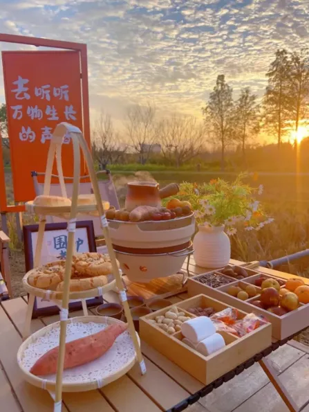 从江豚湾出发车程约20分钟直达濠河村,精准匹配下午逆光夕阳黄金拍摄期,春日夕阳为花田、采摘园镀上暖金光影,出片率拉满。
