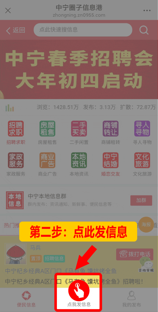 中宁县丰安屯旅游发展有限公司招聘启事↓点此查看招聘详情↓ (点击上方小程序查看) 如何发信息 ↓发布招聘请查看下文↓第一步