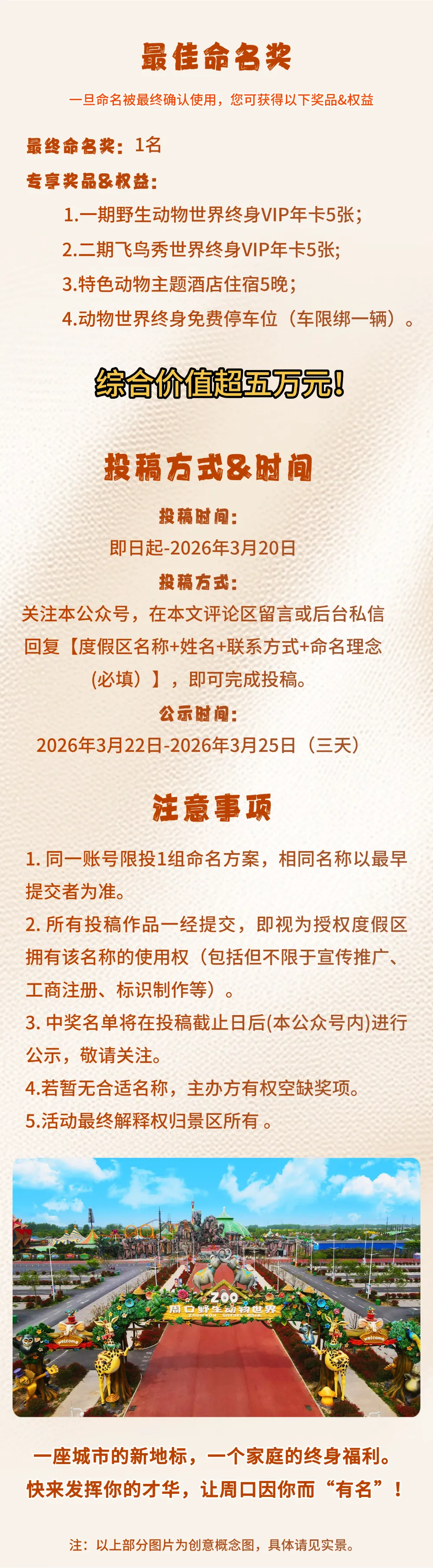 一 “名” 惊人!周口一旅游度假区公开征名 终身VIP等5万+权益等您拿!