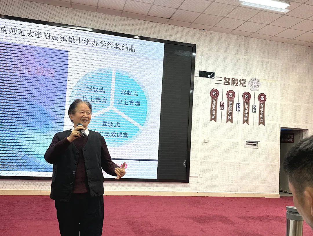 胡克州校长首先从云南师范大学附属镇雄中学的中考、高考情况谈起,介绍了镇雄中学的教育教学经验——驾驭式自主教学。他介绍了学校从驾驭式自主德育入手,抓实驾驭式自主管理,构建驾驭式自主高效课堂,从而实现教学质量的高度提升。