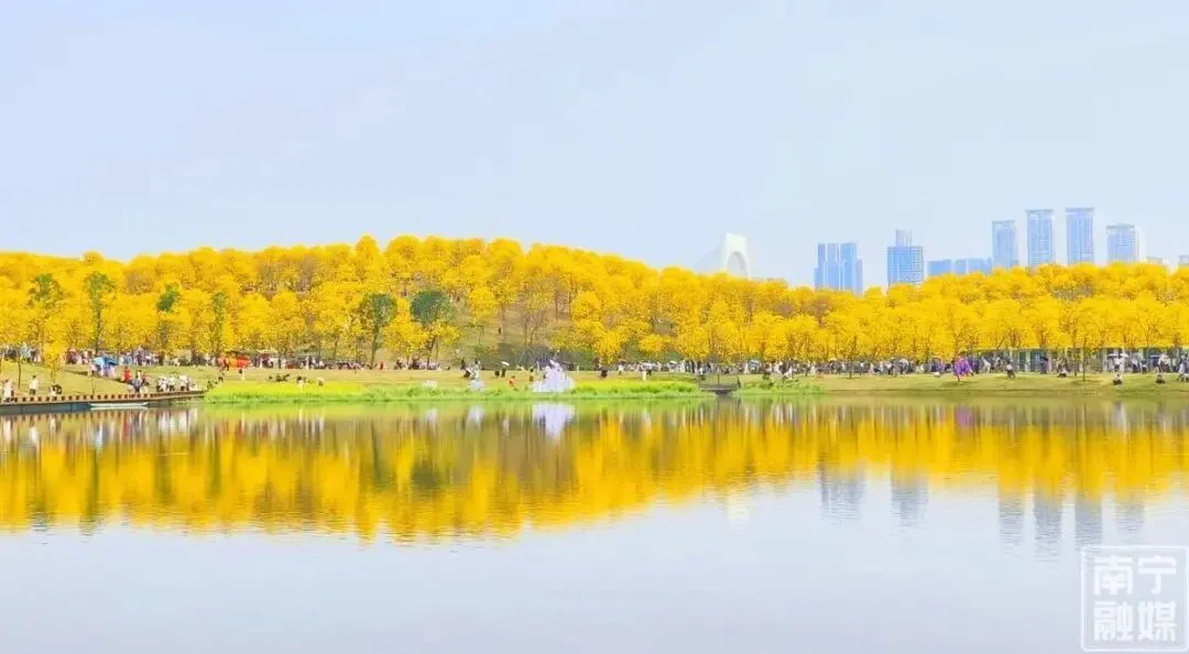 如今,南宁园博园的桃花、金鱼草、黄花风铃盛放。