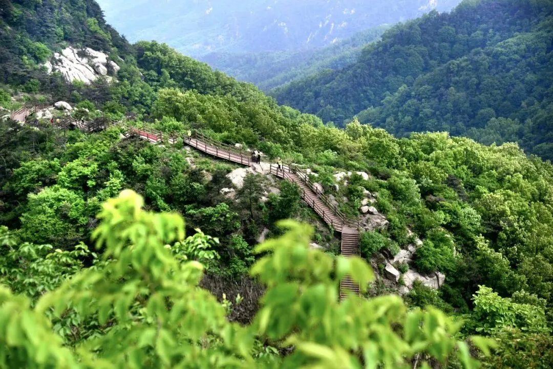 这里森林覆盖率超98%,负氧离子浓度高达85万/cm³,是名副其实的中国森林氧吧。千米云端、林海松涛、瀑布溪流、古刹道观,一步一景,把春天装进山野里。