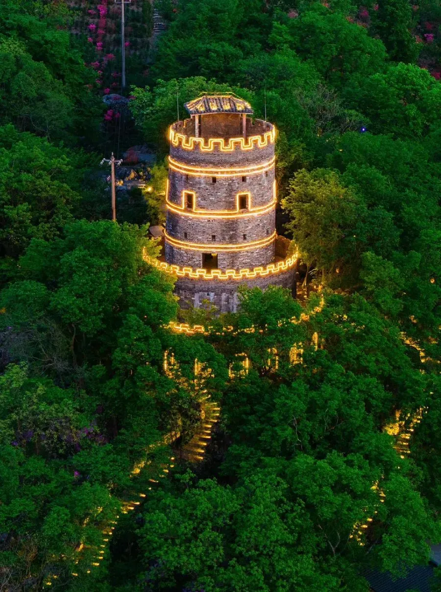 全国独有森林夜景,夜晚的忆江南12景,从山脚荆公书堂至山顶碉楼,梦幻的灯光与浩瀚繁星相呼应,整座山都是森林夜景,全国独有!