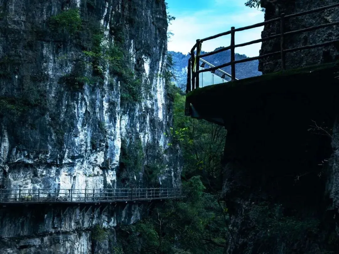 景区总面积60平方公里,这里有超过6300米的绝壁栈道,有236米的绝壁玻璃栈道,有156米长的3D玻璃廊桥,有高差316米的脉动厢式索道。这里还有通往巴蜀的古盐道。
