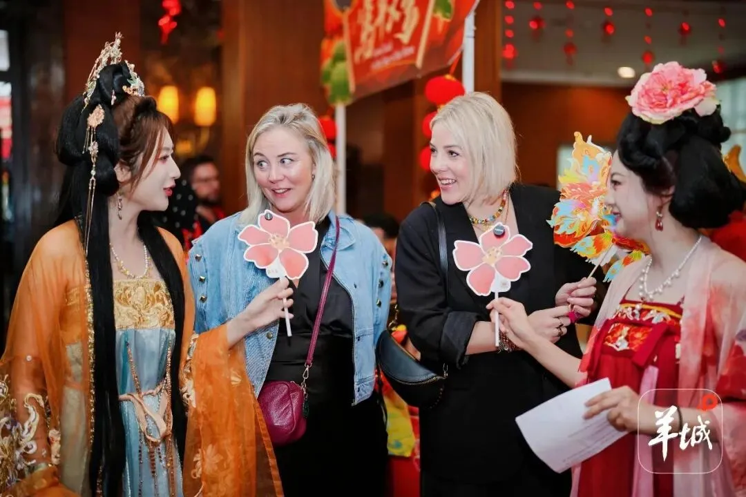 外国游客感受中国年味。羊城晚报记者 张瑞柠 摄