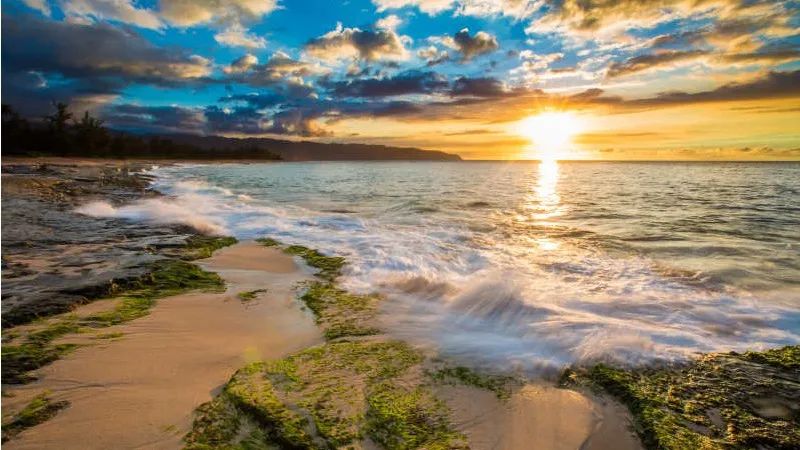 北海岸的“日落海滩”是夏威夷最著名的观日落的地方之一,这里是冲浪者的天堂,每年冬天世界冲浪锦标赛都在这里举行。