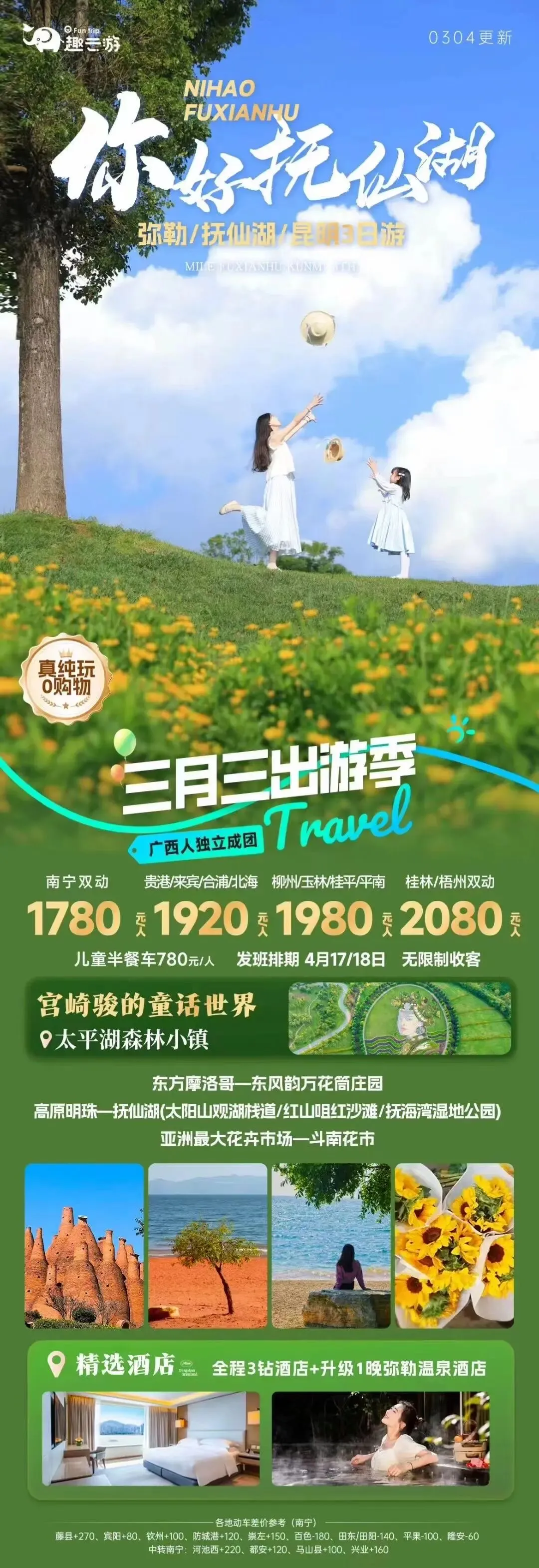弥勒+抚仙湖+昆明3日游