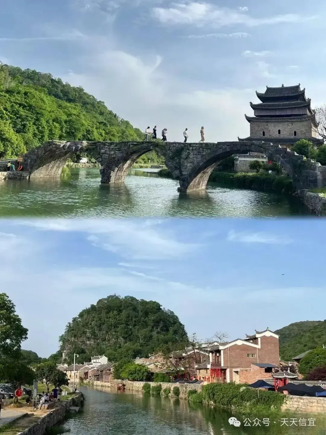 古典山水画卷,从唐代延续至今的千年古村落,保存了石桥、楼阁、碑亭等各种古建筑,漫步于河边的青石板路上,既能感受历史文化的厚重,又能品味山水风光的秀美。