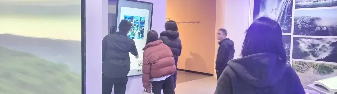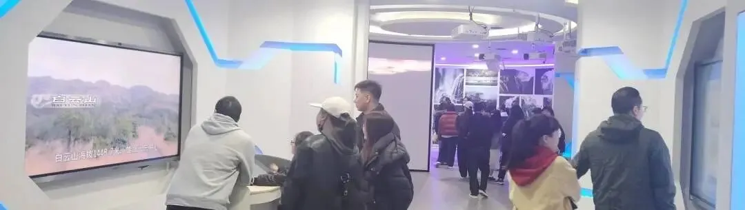 在地质公园博物馆,职工们驻足观看白云山的奇景,在纪录片中进一步了解白云山山水的多样