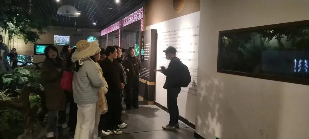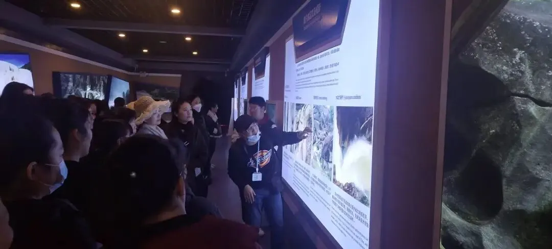 导游为职工们讲解壶穴的定义与成因,介绍亿年水流形成的地质奇观,以及古建文化在古居民区留下的历史印记