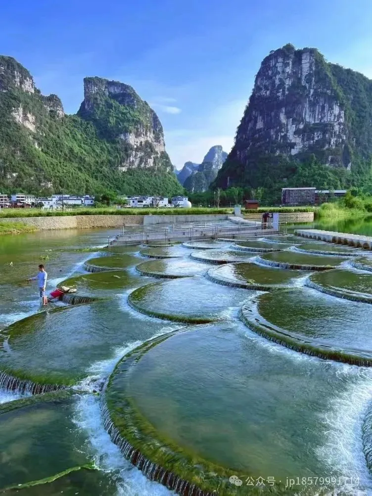 在明仕田园中,有一处名为“鱼鳞坝”的地方,是游客们争相拍照的网红打卡地。鱼鳞坝是人工修建的堤坝,形状如同鱼鳞一般,一片片排列整齐却又保持了自然的美感。在这里,你可以感受到大自然的魅力,也可以看到人类智慧的结晶。鱼鳞坝不仅具有存蓄水、通行、观赏的功能,更是一处富有诗意的景观。