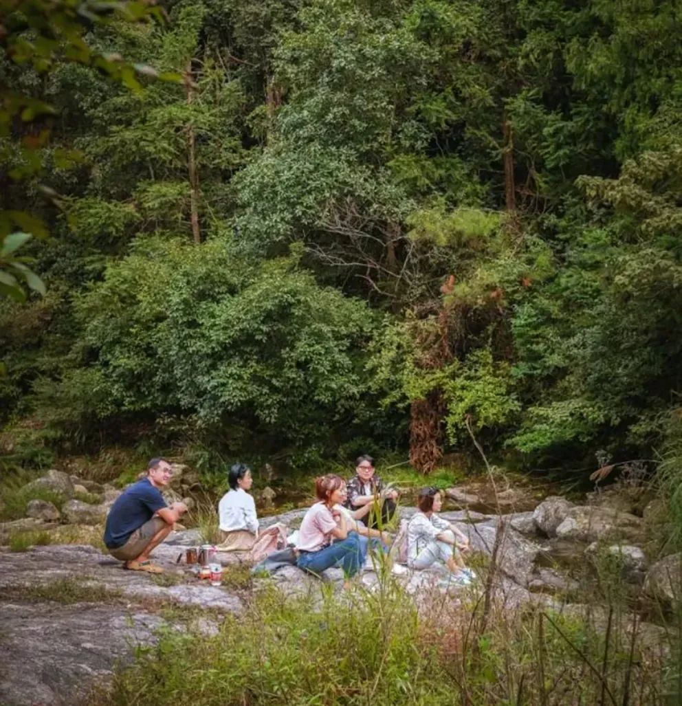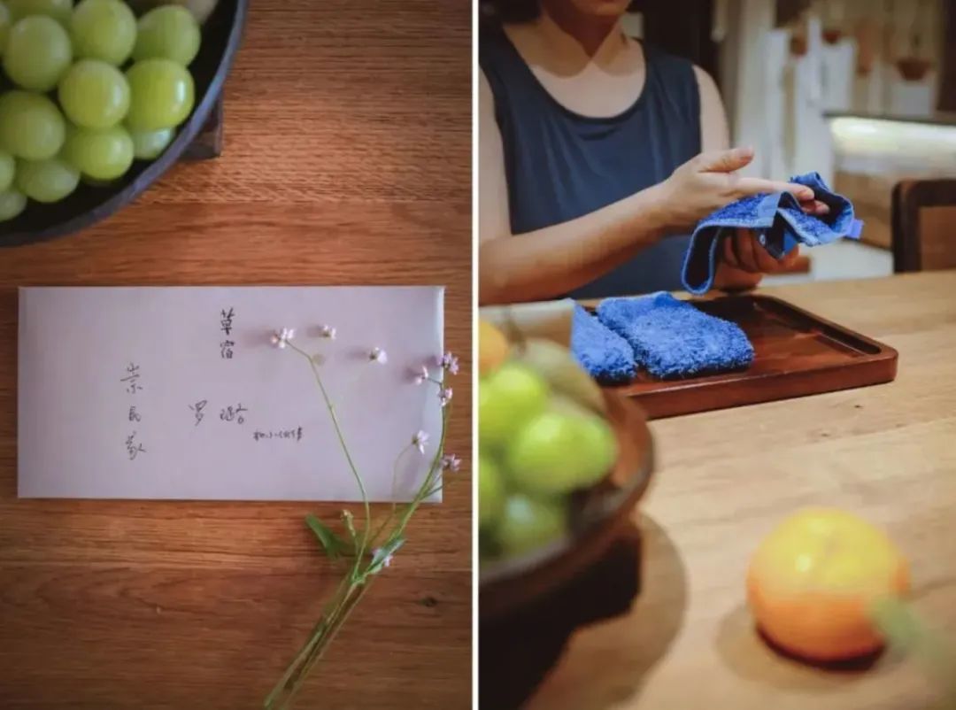 “比如,我们使用了当地回收的青石板,选用老木门、老木柜等当地家具,还以树杈做挂钩,悬挂竹篮等生活用品,我觉得它们跟乡野气息是吻合的。” 张健说。作为一位户外达人,他早在几年前便与好友共同创立了gogogo户外生活俱乐部。旅途中的山野之美,让他在设计中更加追求真实和自然。不过,一味的朴拙,难免单调,而且会缺乏想象。设计团队也在空间里加进了一些比较时尚的元素,比如SMEG冰箱、Vintage经典家具等。在新和旧、乡野和城市的对话中,形成一种有趣的碰撞。近两年来,随着不断有媒体报道,草宿的知名度越来越高,逐渐“破圈”。虽然住客络绎不绝,但草宿·崇民家始终保持着一种闲散的气质,以融入而又超然的态度,和所在的胜坑村互相成就。如果说胜坑是草宿的背景,那草宿就是背景上最精致的一笔。